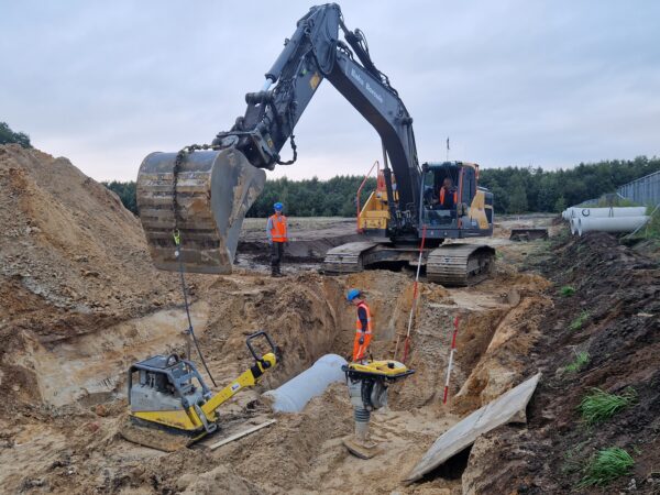 - Aanleg van circa 1000m1 kunststof riool 250mm-400mm